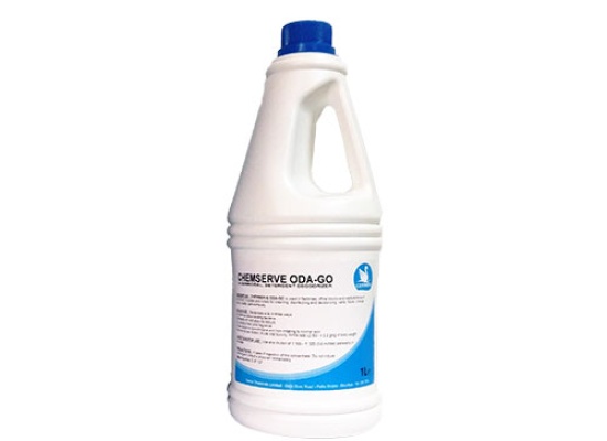 CHEMSERVE ODA-GO is a biodegradable germicidal, detergent deodorizer. It is used in factories, office blocks and institutions such as schools, hospitals and hotels for cleaning, disinfecting and deodorizing, walls, floors, change rooms, toilets, bathrooms etc. It destroys odour-causing bacteria, reacts with and absorbs odours and leave a fresh pine fragrance. Product is food grade at recommended dilutions. When tested in accordance with SABS Specification 636-1971 for QAC’s, CHEMSERVE ODA-GO gives 99.9% kill in 5 minutes of the test organism at the following dilutions